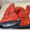 These mittens are built with an Argon 90 outer shell, 2.5oz Climashield APEX insulation, and a Cloud 71 mesh inner shell. They are significantly warmer than the Alpha option, while maintaining the same breathability, and only increasing the weight by a tenth of an ounce. The inner mesh is nice against the skin, even when wet and dries extremely fast. The wrist is long enough to keep a good overlap with a sleeve and is finished with a cinchable elastic drawcord that is fully removable if you don’t want it (removes about .1oz). They are built in an ultralight hiker style with an Argon 90 palm.