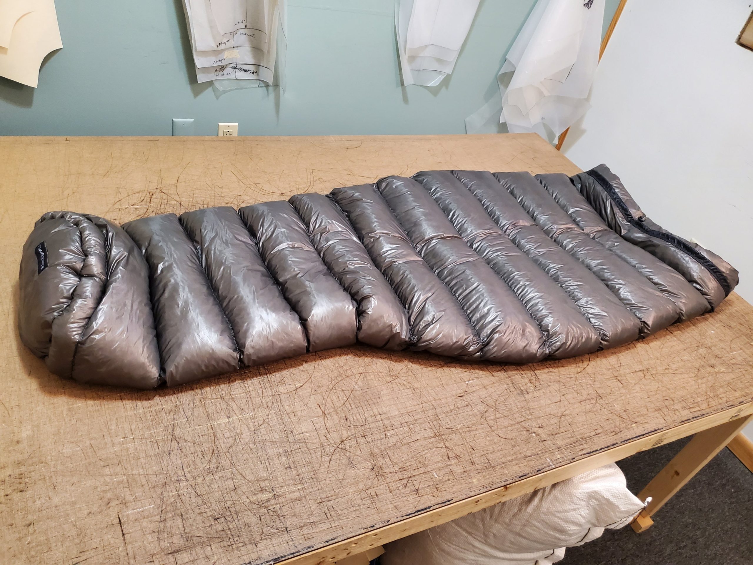 It has horizontal sewn through chambers stuffed with 1000 fill power down and a puffy draft collar. The top is connected with two snaps and cinched with a shock cord. It is important with any sleep system that it is paired with a sleeping pad rated to similar temperatures. It is especially important with quilts and false bottom bags and it should be noted that pads that utilize empty spaces are generally not suitable for these types of sleep systems.